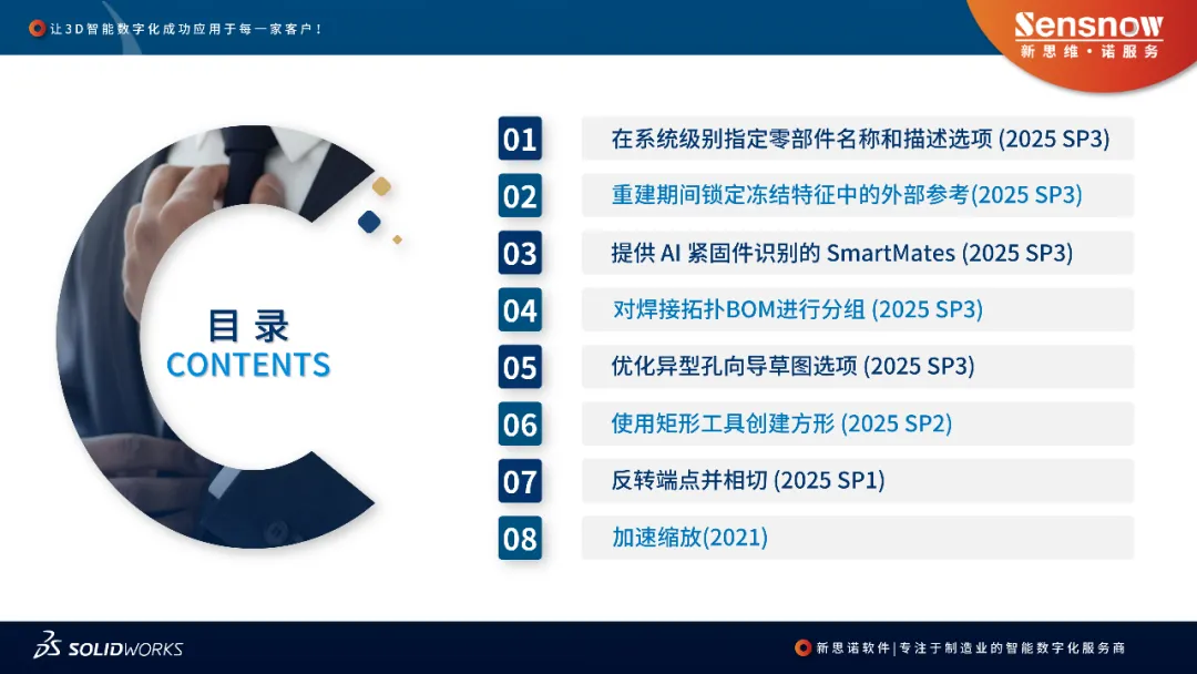 工程師速來!SOLIDWORKS超實用新功能直播詳解——8大升級功能一網打盡,高效操作不容錯過!包括在系統級別指定零部件名稱和描述選項、重建期間鎖定凍結特征中的外部參考、AI賦能的智能緊固件識別SmartMates、焊接拓撲BOM分組功能、異型孔向導草圖優化、矩形工具創建方形、反轉端點并相切操作以及加速縮放性能提升等!直播不僅涵蓋2025 SP3最新增強內容,還兼顧2025 SP2和SP1的實用更新,甚至包含自2021版本以來的效率優化功能實操,真正實現從設計到裝配的全流程效率突破。直播中JOE將結合實際應用場景演示操作技巧,幫你徹底解決參考關系混亂、裝配卡頓、BOM表耗時等常見痛點。