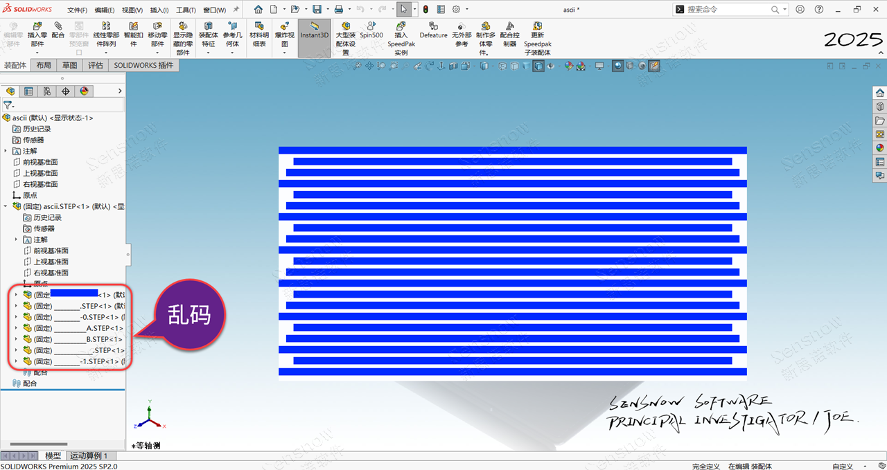 SOLIDWORKS导入STEP后FM设计树名称出现乱码(横线)!