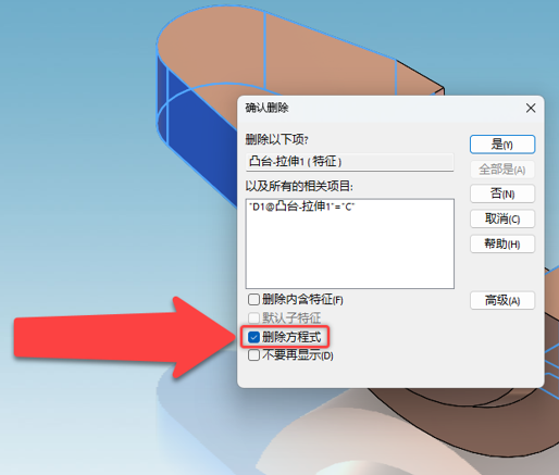 在 SOLIDWORKS 2026 版本中允許我們在刪除特征或草圖的同時一并刪除關聯方程式,無需單獨去移除報錯方程式。現在按 ESC 可以中斷特征的創建過程,將適用于:圓角、倒角、線性陣列、圓周陣列等特征的創建過程。