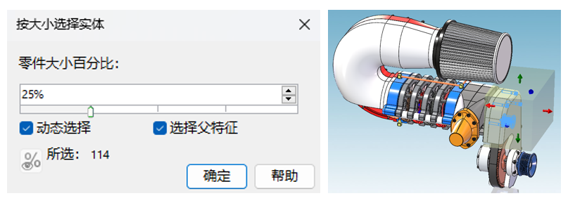 選擇功能增加“按大小選擇實體”和“按體積 ( 包圍框 ) 選擇實體”