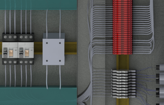 將來自 SOLIDWORKS Electrical 的電氣圖解設計數據與機器或其他產品的 3D 模型集成在一起。您可以將所有電氣零部件置于 3D 模型中,再將它們全都連接起來,進而確定電線、電纜和纜束的長度。